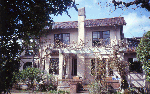 外観は当時アメリカで流行していた、アメリカン・スパニッシュ様式を基調とした意匠になっています。屋根は切妻屋根の赤色桟瓦葺で、外壁面はモルタルのスタッコ仕上げになっています。